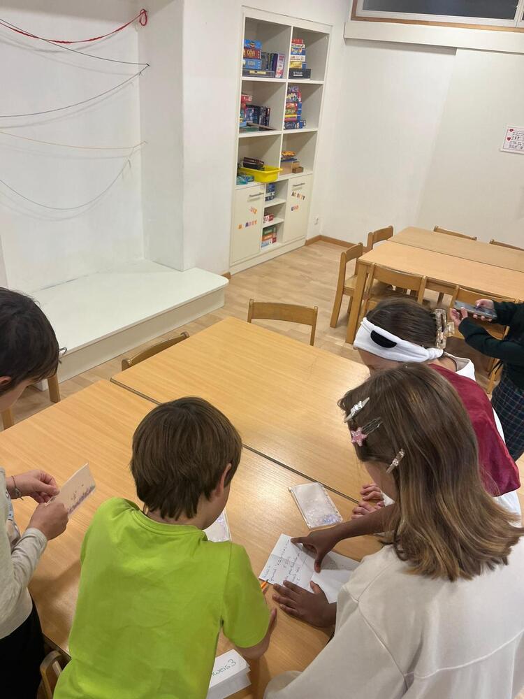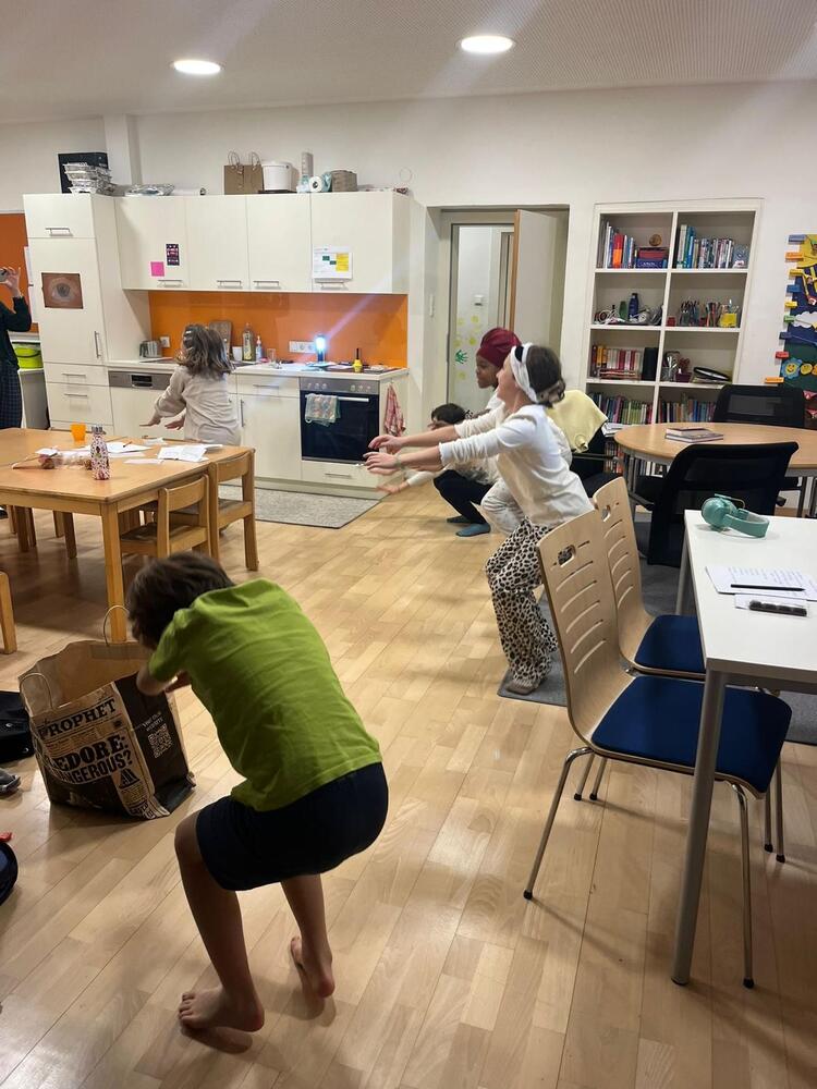 Zu Beginn starteten wir mit einem Lese- und Erzählspiel, das ähnlich wie eine Stille Post funktionierte. Dabei wurde die Geschichte „Das Geheimnis unter dem alten Schulhaus“ weitergegeben.
