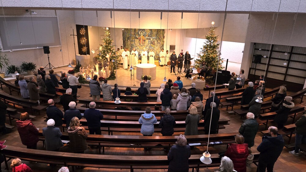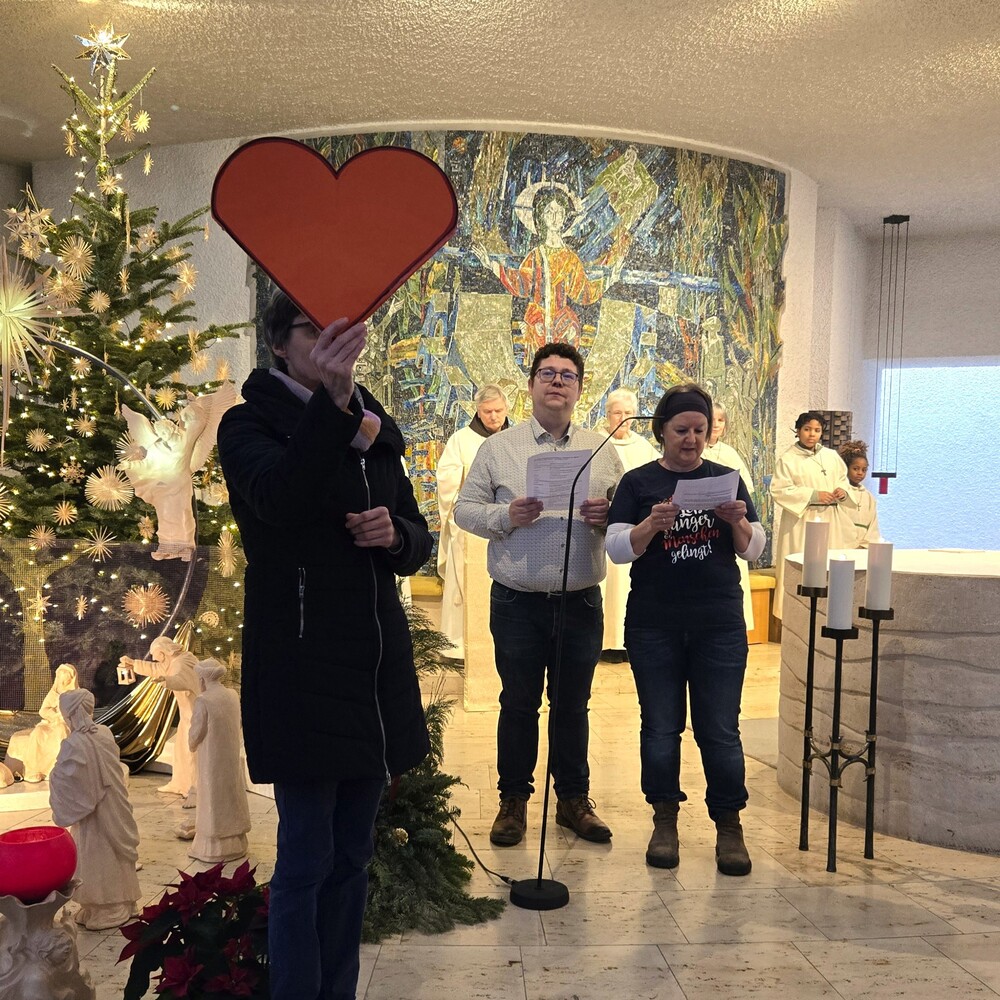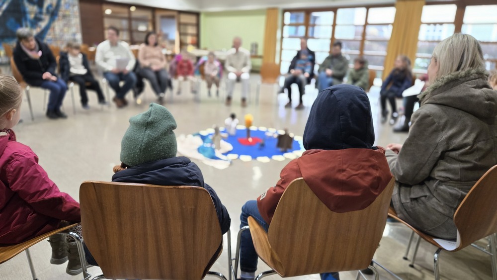 Parallel dazu gab es für die Kinder einen eigens vorbereiteten Wortgottesdienst im Pfarrsaal. Sr. Ulrike Weiss und Hans Fackler von den Salesianischen Mitarbeitern stellten dabei das Lamm in den Mittelpunkt, passend zum Evangelium, in dem Jesus von Johannes dem Täufer als „das Lamm Gottes“ bezeichnet wird. Ein Lamm ist alleine schutzlos, aber in Gemeinschaft findet es Schutz und Geborgenheit. Zugleich wurde deutlich: Jesus ist nicht nur das Lamm Gottes, sondern auch der Gute Hirte, der seine Herde sicher führt. Nach den Fürbitten zogen die Kinder wieder in die Kirche ein, brachten ihre Schafe zum Altar und sangen mit Gesten das Lied „Sei mutig und stark“.