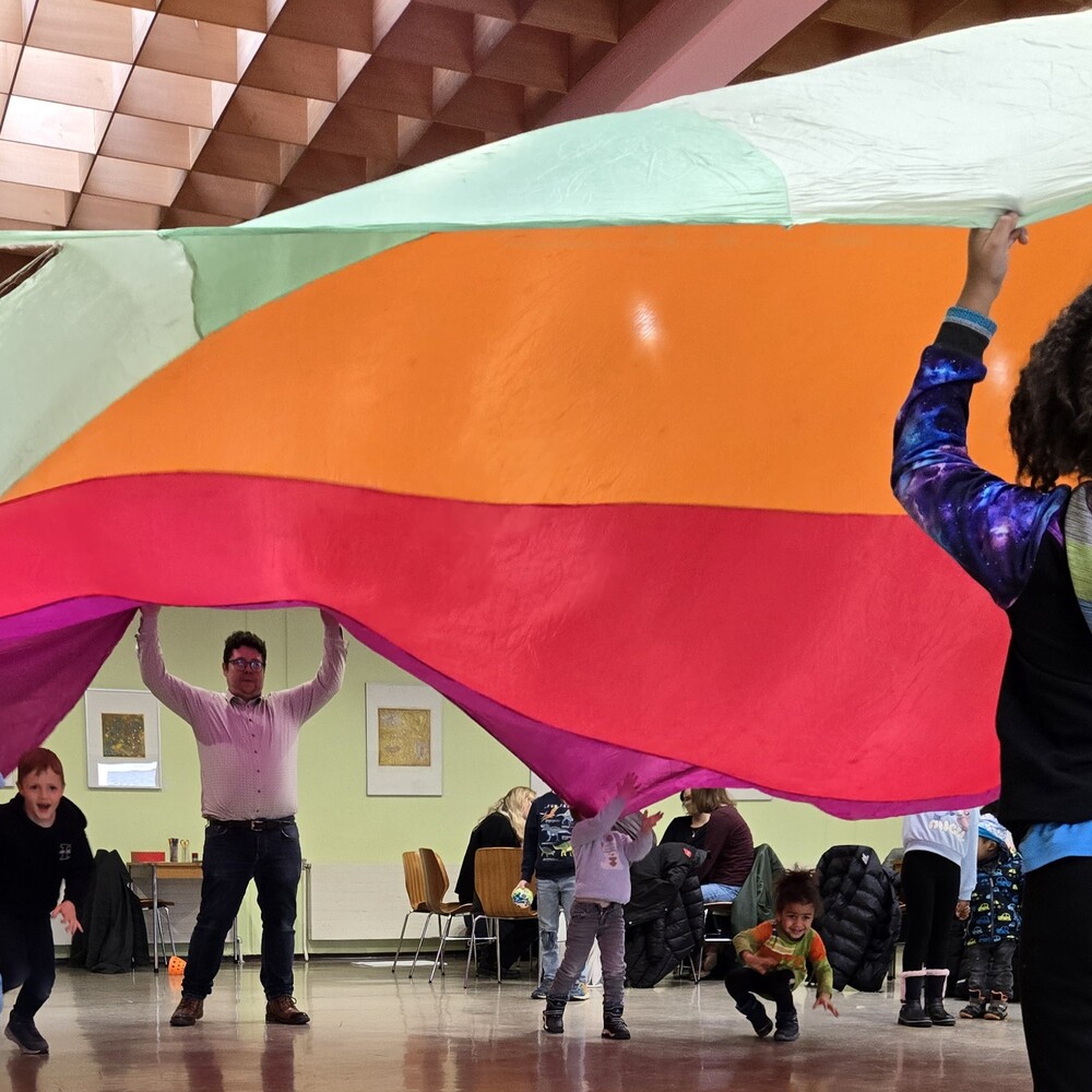 Im Anschluss an den Gottesdienst waren alle zum großen Pfarrkaffee eingeladen. Dank zahlreicher Kuchenspenden von Pfarrmitgliedern und Freunden war für das leibliche Wohl bestens gesorgt. Für die Kinder gab es außerdem ein buntes Programm mit Spielen: Schwungtuch, Seilziehen, Luftballons und Malstationen sorgten für Begeisterung und Bewegung.