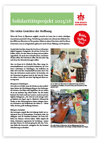 Jeder Beitrag hilft den Don Bosco Schwestern, Kinder und Jugendliche in Myanmar zu schützen, zu bilden und zu begleiten.